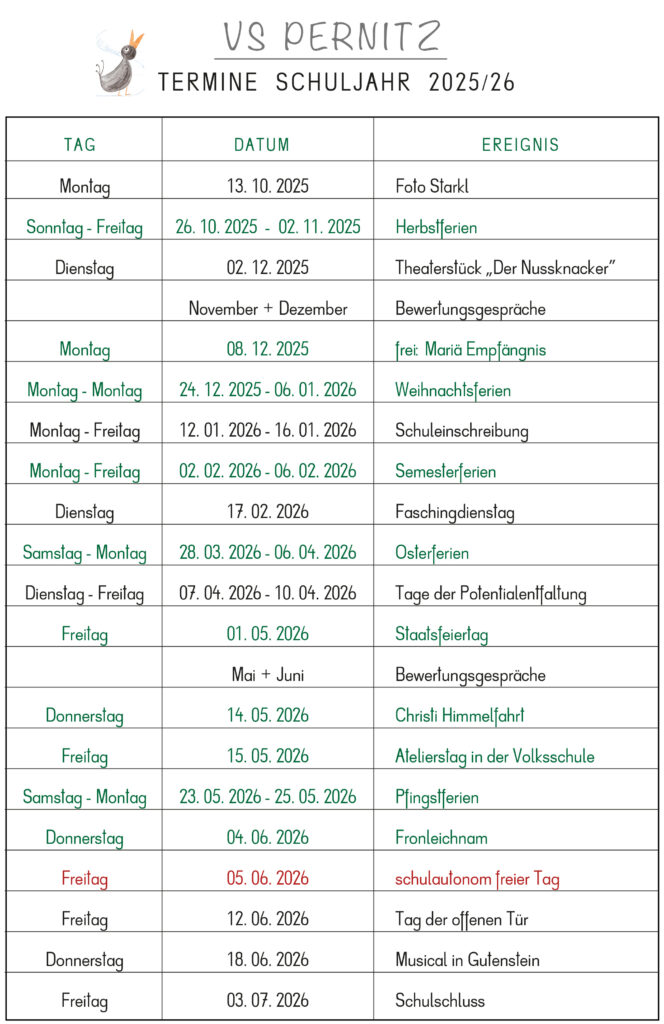 • Termine Schuljahr 2025/26